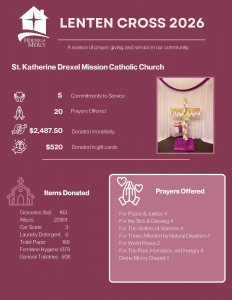 Join St. Katharine Drexel Mission, FJOB Knights of Columbus, and Haymarket Regional Food Pantry, for our next food drive, in May. Pick up a food collection bag after Mass the weekend of May 9/10, and return the bag and donations to SKD Church narthex the weekend of May 16/17. No glass, please. See the bulletin, in May, for more information.